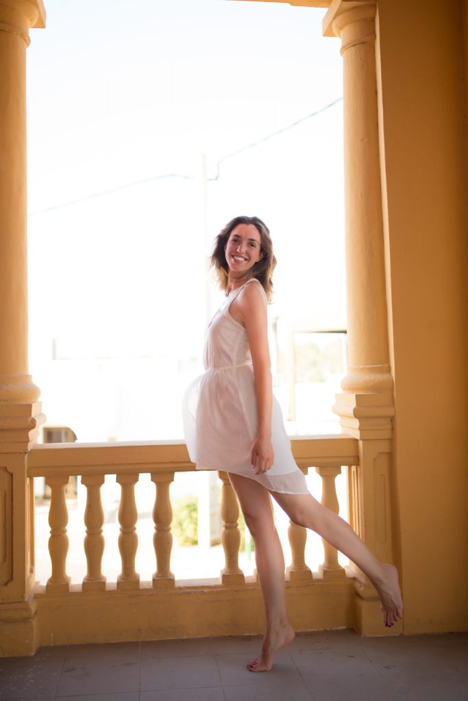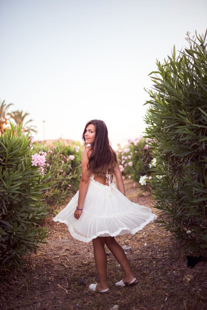 Vestido blanco hecho de tela llega hasta la rodilla perfecto para ir a cualquier lado.